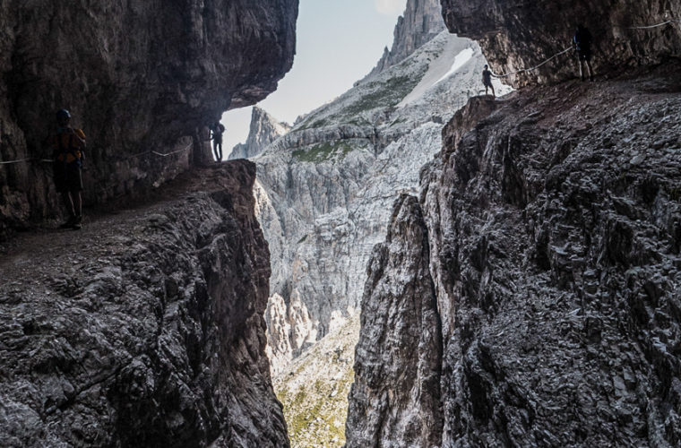 Questa impressionante ferrata è stata costruita dalle truppe alpine italiane durante la Grande Guerra; è immersa in un paesaggio unico ed è tecnicamente relativamente facile, ma non deve essere sottovalutata per la su lunghezza e soprattutto per il fatto che è spesso coperta dalla neve.