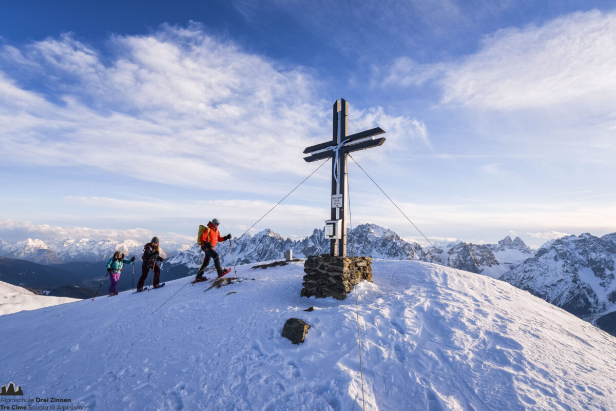 Die Tour auf das 2.550 Meter hohe Hornischeck ist eine der spektakulärsten Schneeschuhtouren rund um Sexten. Die Wanderung führt auf einen Panoramagipfels des Karnischen Kamms, von wo man eine wunderbare Rundumsicht auf die Großglocknergruppe, die Hohen Tauern und nicht zuletzt auf die Sextner Dolomiten mit den Dreizinnen hat.