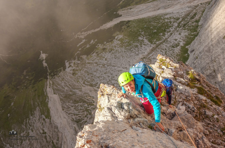 Obwohl die Route neben der mächtigen Südwand relativ kurz ausschaut, ist sie mit 380Hm und 14 Seillängen ein alpines Unterfangen. Die elegante Linie, der feste Fels und die südexponierte Lage lassen jedoch auch den Genussfaktor nicht zu kurz kommen.