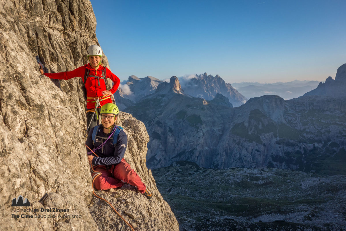Die Demuthkante ist mit ihren 23 Seillängen und über 600 Metern die längste der klassischen Routen an den Drei Zinnen.
